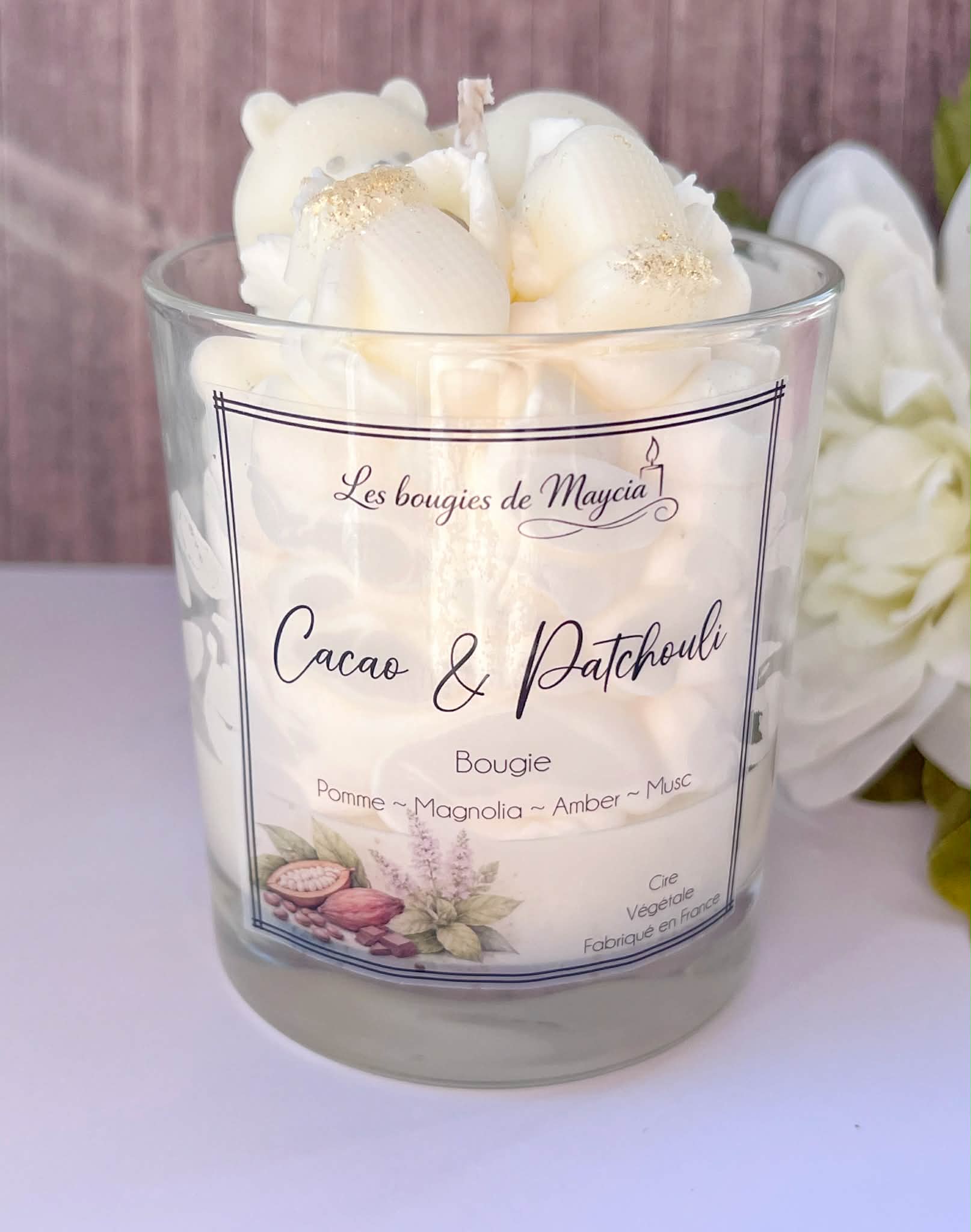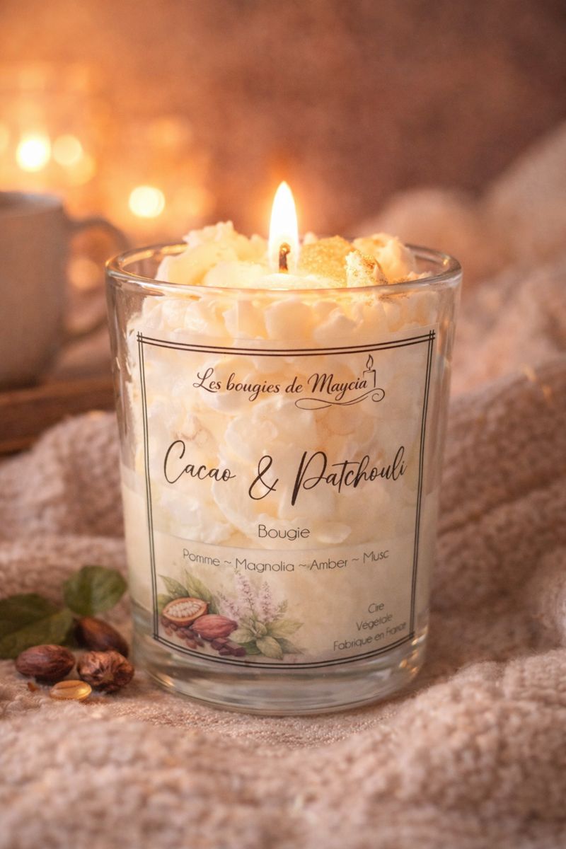 Bougie Fouettée Artisanale Cacao & Patchouli – Cire de Soja