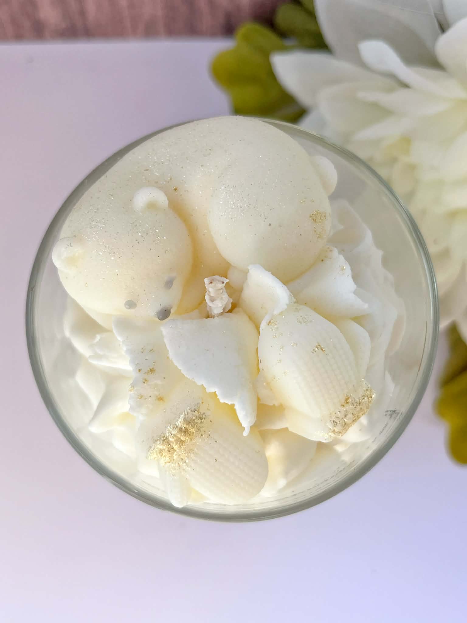 Plongez dans une atmosphère douce et réconfortante avec cette bougie fouettée artisanale, décorée d’un topper ourson polaire, parfaite pour créer une ambiance chaleureuse durant les mois d’hiver. Chaque bougie est réalisée à la main avec soin, faisant de chaque pièce une création unique.