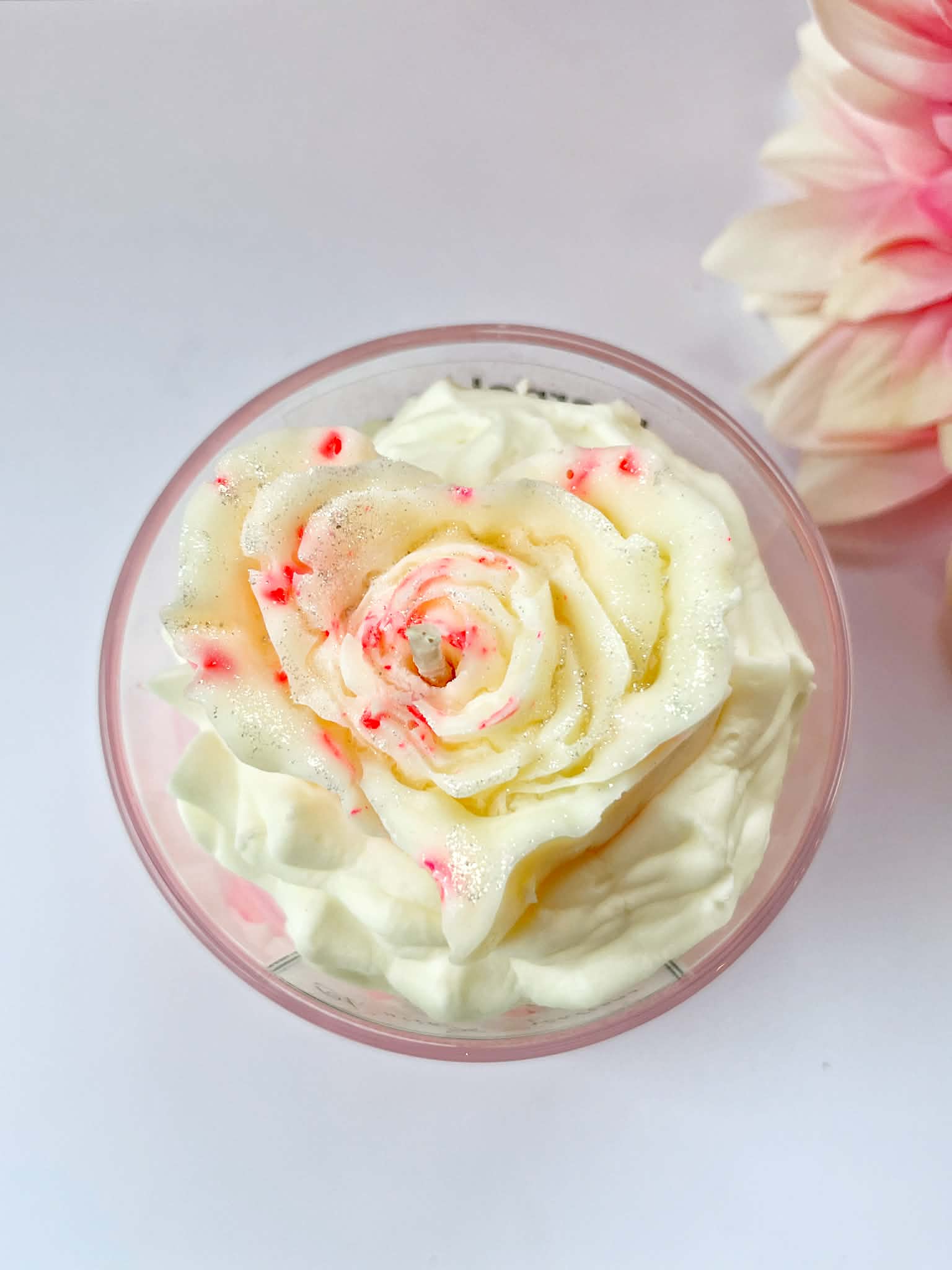 Chaque bougie est entièrement fabriquée à la main, avec soin et passion. Sa texture fouettée, légère et aérienne, lui confère une finition raffinée et originale, rappelant une crème délicatement travaillée.