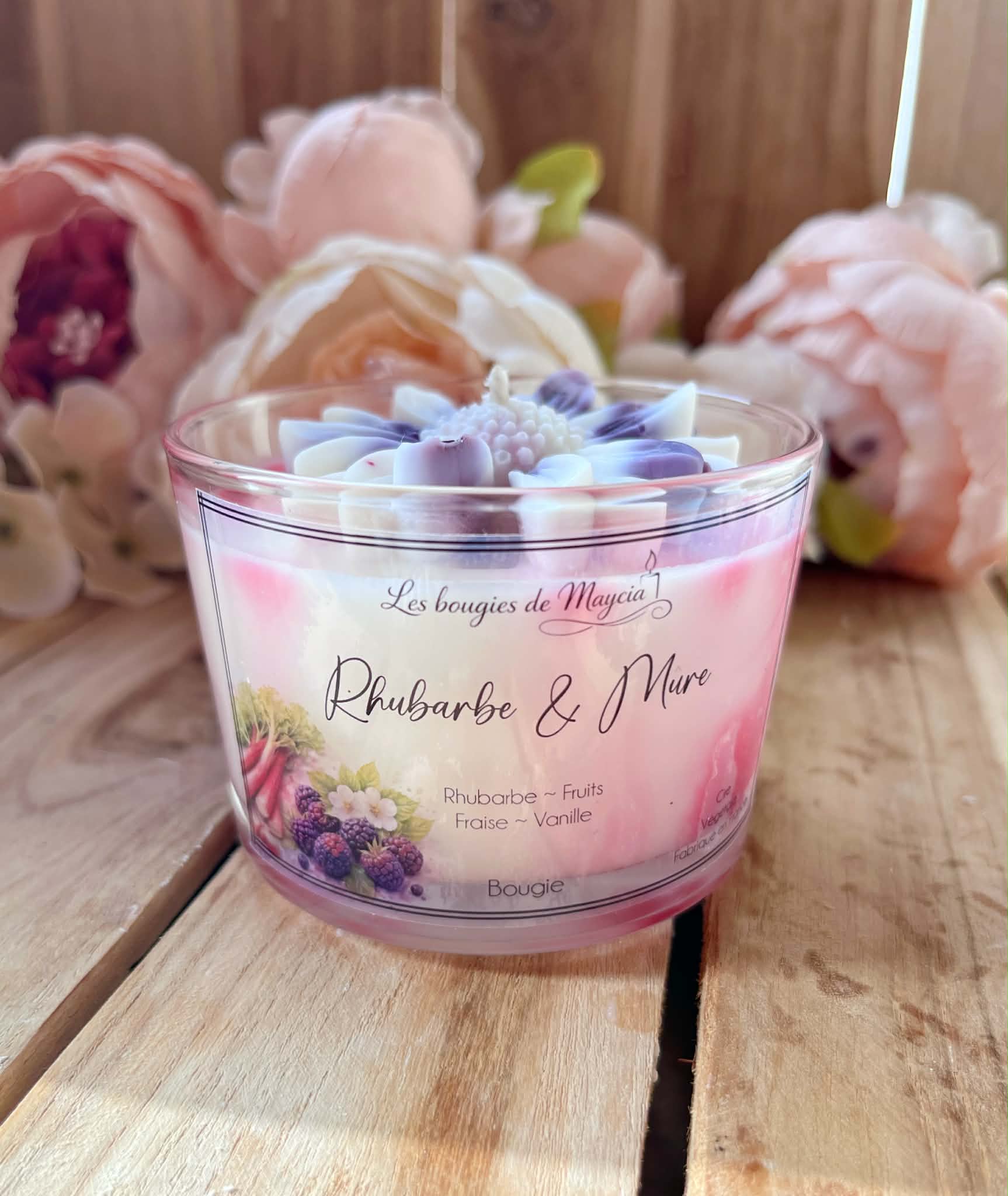 Bougie parfumée cire soja – rhubarbe et mûre artisanale