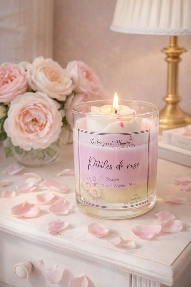 🌸 Découvrez notre Bougie Romantique aux Pétales de Rose