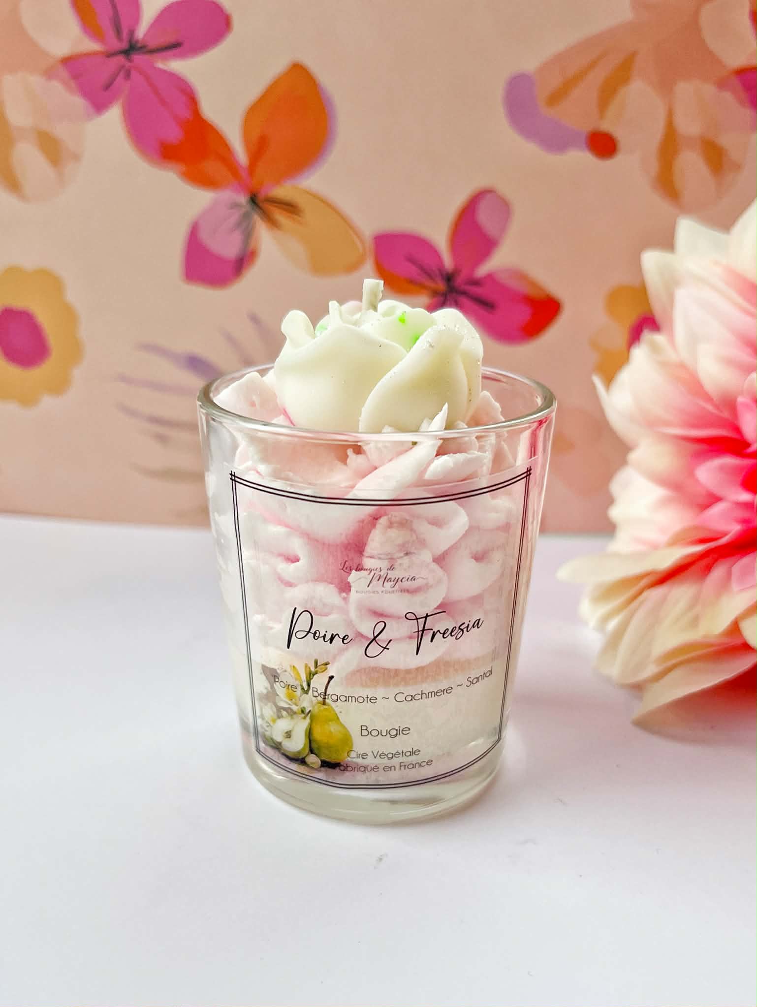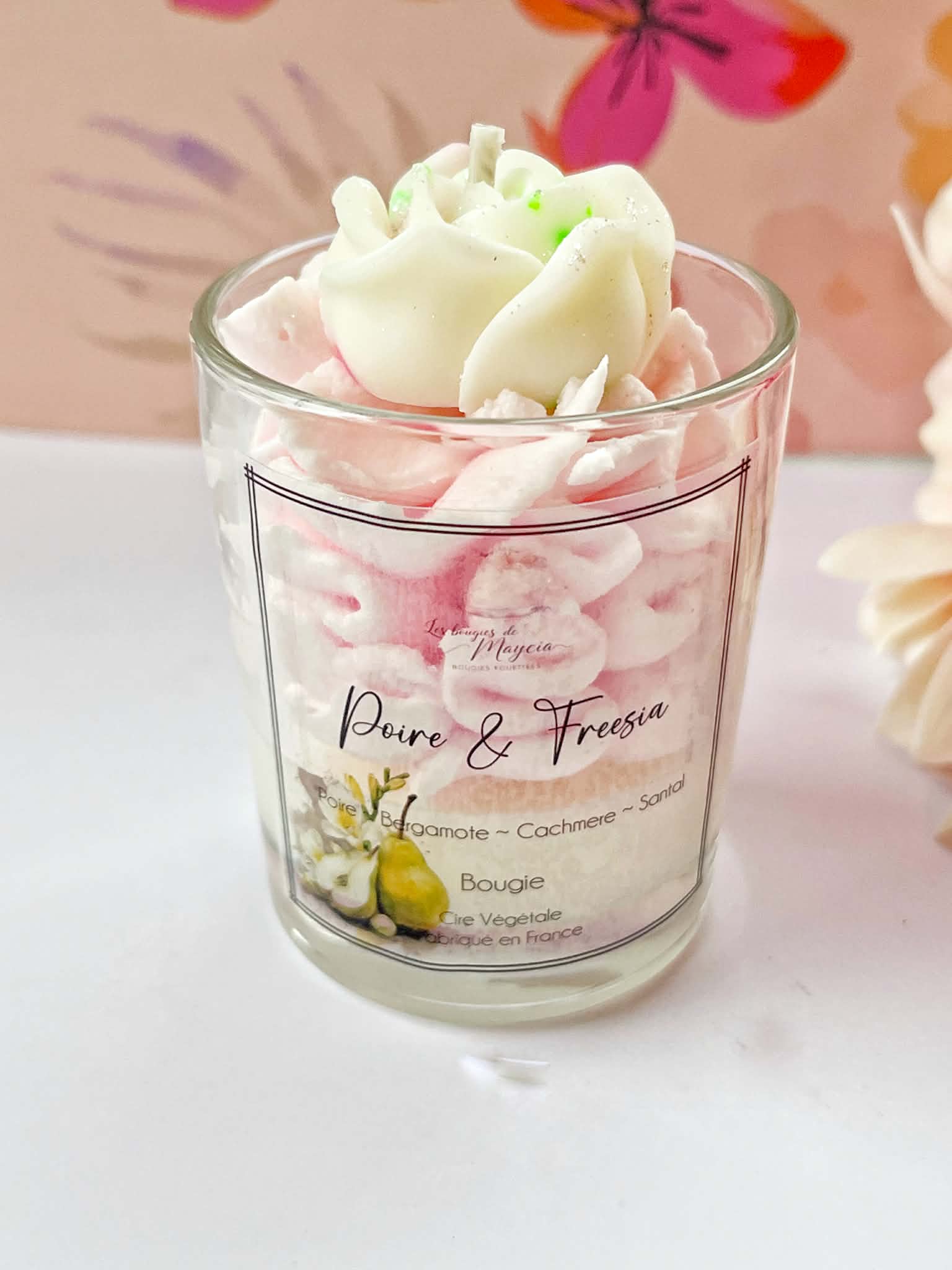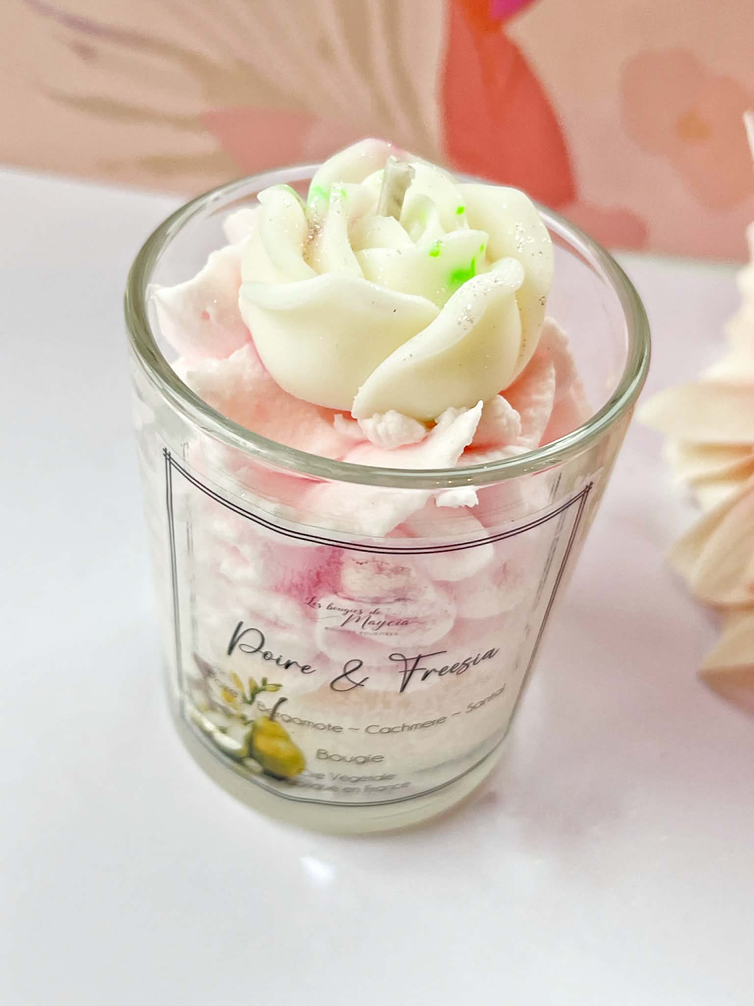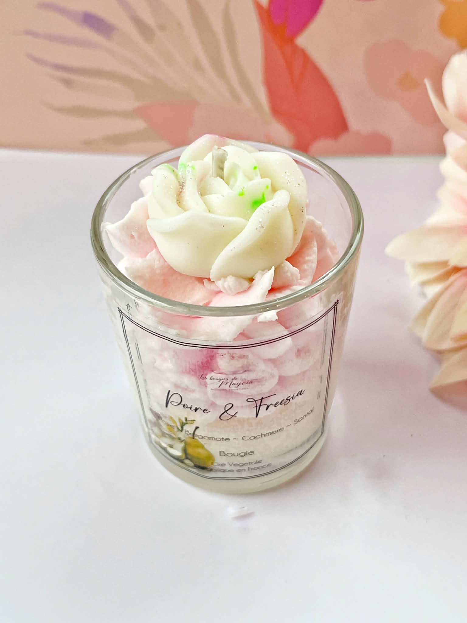 La finition fouettée donne à cette bougie faite main un aspect léger et gourmand, tandis que le topper floral décoratiftransforme chaque pièce en un véritable objet d’art. Chaque bougie est unique, avec de légères variations naturelles dues à la fabrication artisanale.