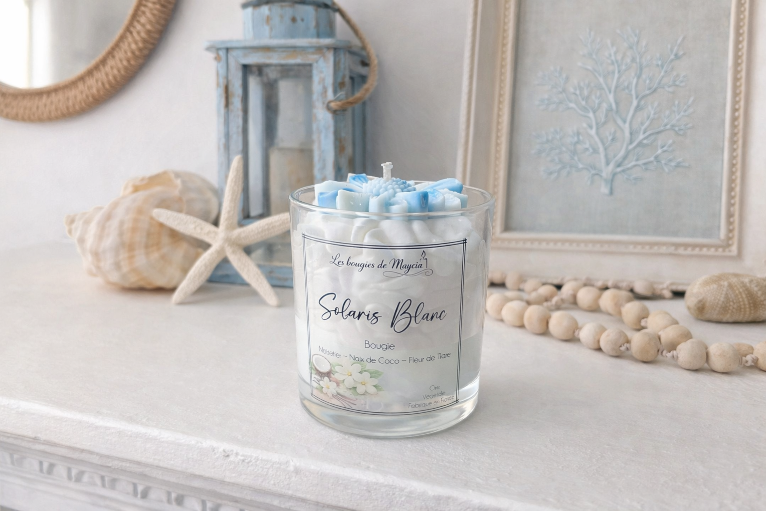 Laissez-vous séduire par Solaris Blanc et apportez à votre intérieur une touche lumineuse, pure et intemporelle grâce à une bougie artisanale en soja conçue pour durer et enchanter vos sens.